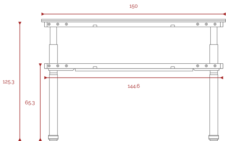 - پیشرانه دو موتوره: میز مجهز به یک سیستم دو موتوره پیشرفته است که امکان تغییر ارتفاع نرم و بیصدا را بین حالتهای نشسته و ایستاده فراهم میکند. این ویژگی به کاربران اجازه میدهد به راحتی و بدون ایجاد سر وصدای اضافی، ارتفاع میز را تنظیم کنند.